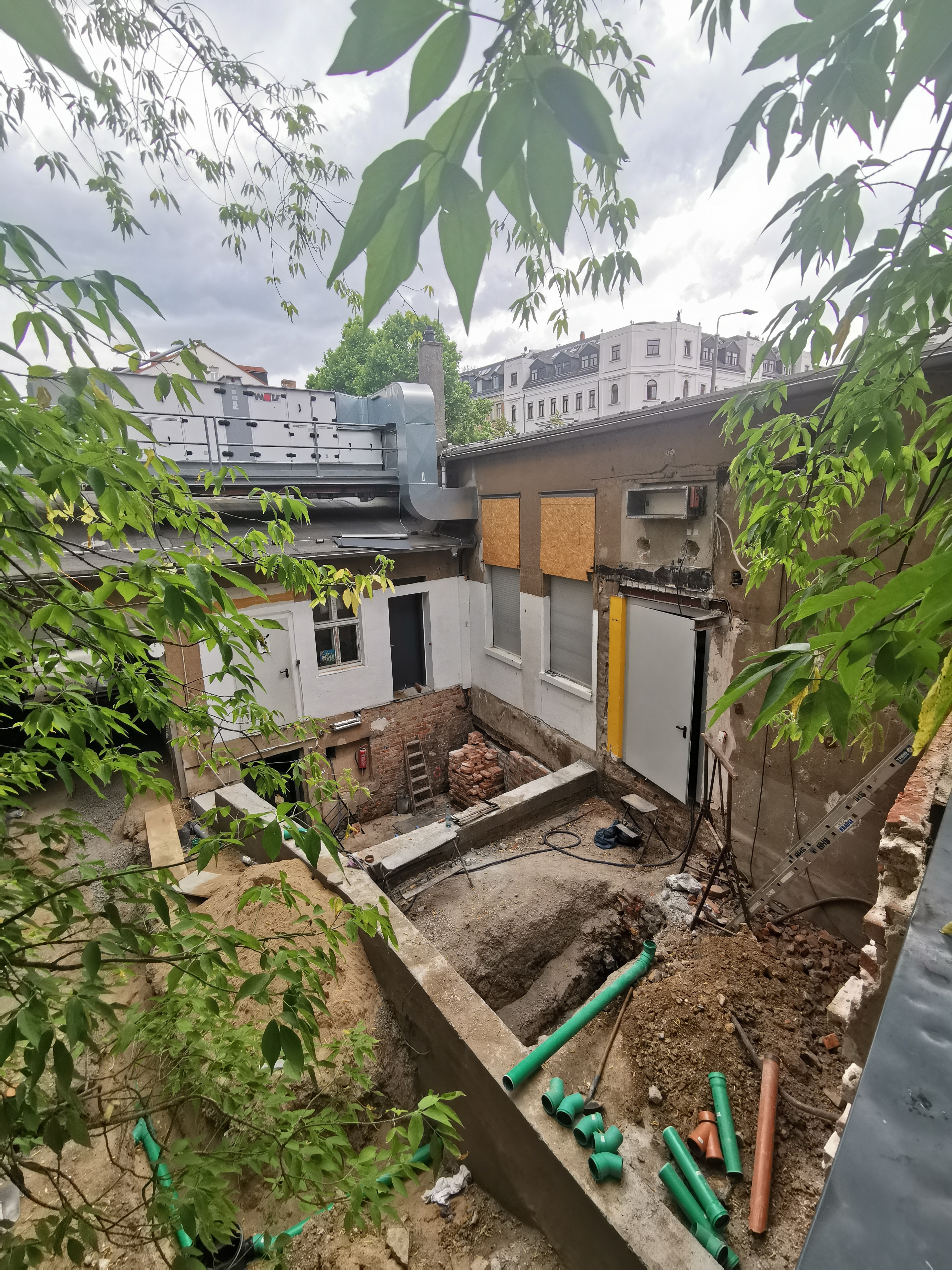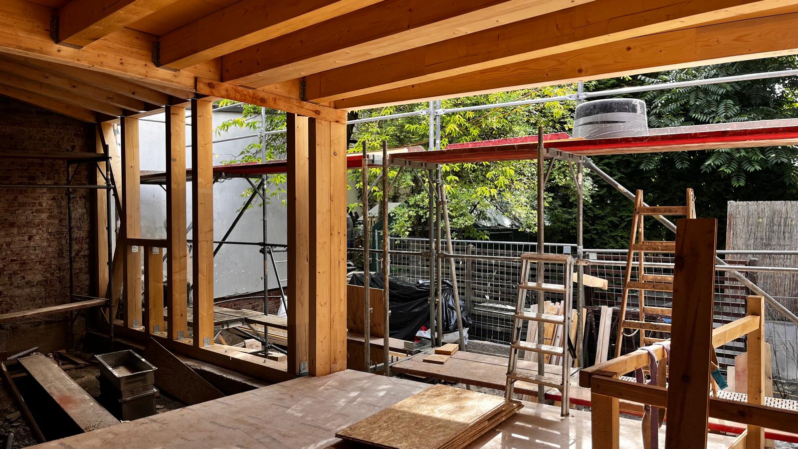 Einen Einblick in den Hinterhof hat man als Passant*in leider nicht, aber auch dort geht es mit großen Schritten voran. Unser neuer Backstage-Bereich nimmt langsam Form an und man kann inzwischen erahnen, wie schön und gemütlich dieser Raum einmal wird.